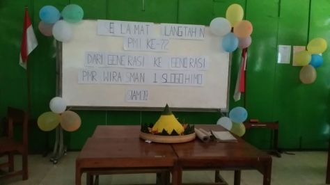 Dalam memperingati Hari Jadi Palang Merah Indonesia ( PMI ) ke 72 tahun yang jatuh pada tanggal 17 September 2017, SMA N 1 Slogohimo khususnya yang tergabung dalam organisasi PMR ( Palang Merah Remaja ) mengadakan beberapa kegiatan seperti out bound, lomba melukis dan potong tumpeng.