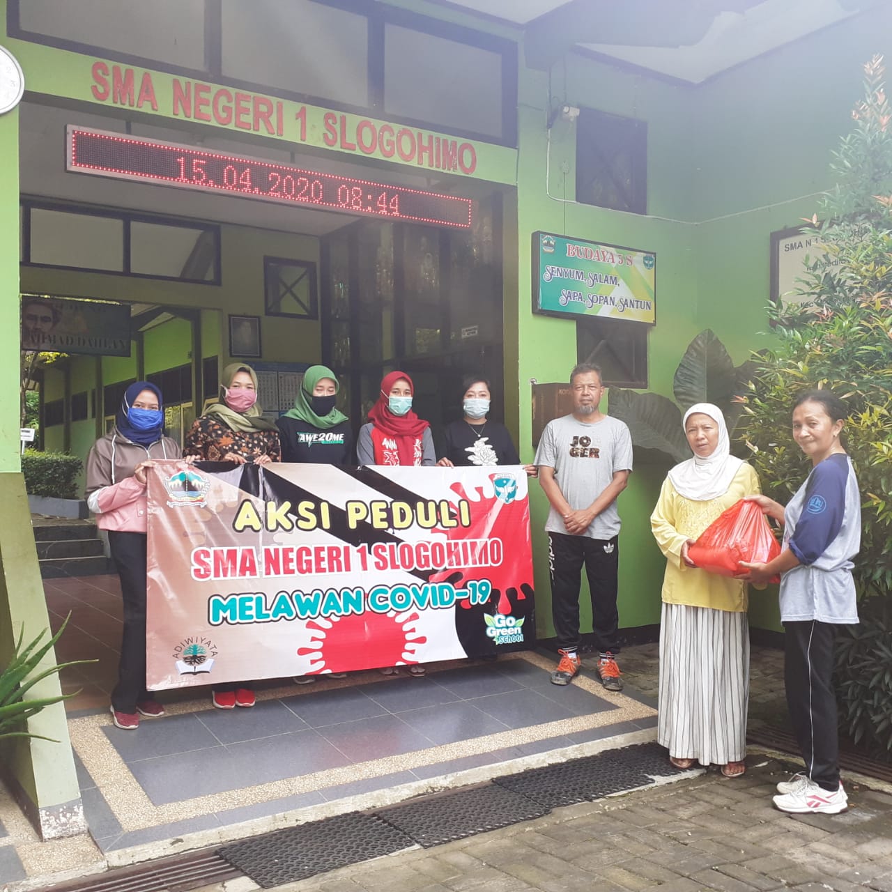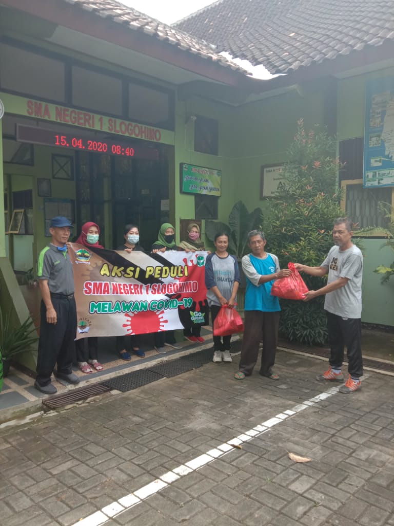 Sebagai bentuk kepedulian atas merebaknya pandemi corona, Keluarga besar SMA N 1 Slogohimo mengumpulkan dana seikhlasnya dari bapak ibu guru dan TAS untuk dibelikan sembako dan dibagikan ke sekitar 35 warga patut menerima bantuan. Sembako ini diharapkan bisa membantu mencukupi kebutuhan pokok mereka.