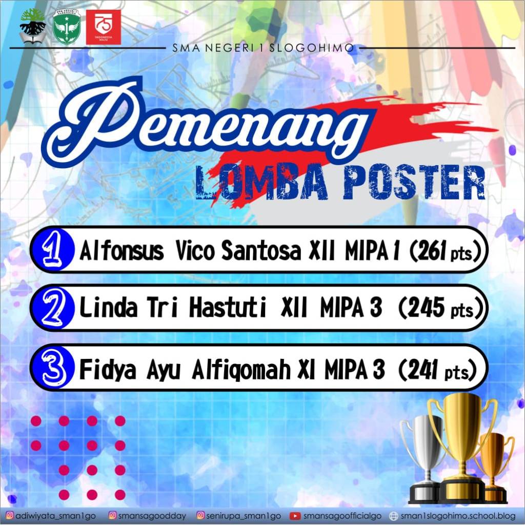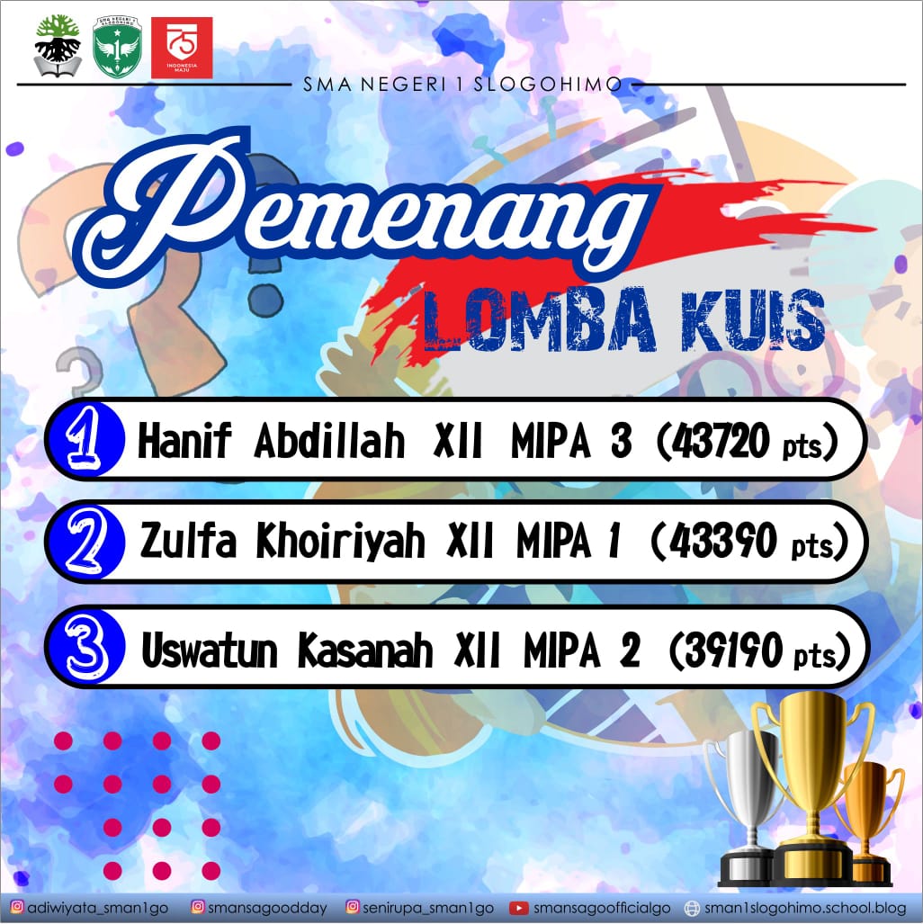 Untuk siswa lomba diadakan secara online, yakni Lomba Poster dan lomba Quiz yang diadakan secara virtual melalui Zoom Meeting dengan Hadiah berupa uang pembinaan dan trophy. Berikut adalah Pemenangnya :