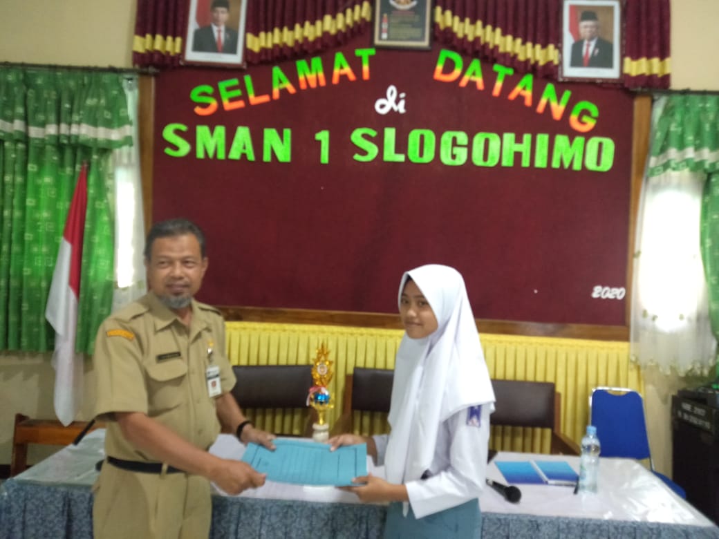 Hari senin tanggal 17 Agustus 2020 mengadakan Upacara Kemerdekaan di lapangan basket SMA N 1 Slogohimo tanpa kehadiran siswa – siswi dengan mematuhi protokol kesehatan dengan memakai masker dan jaga jarak.